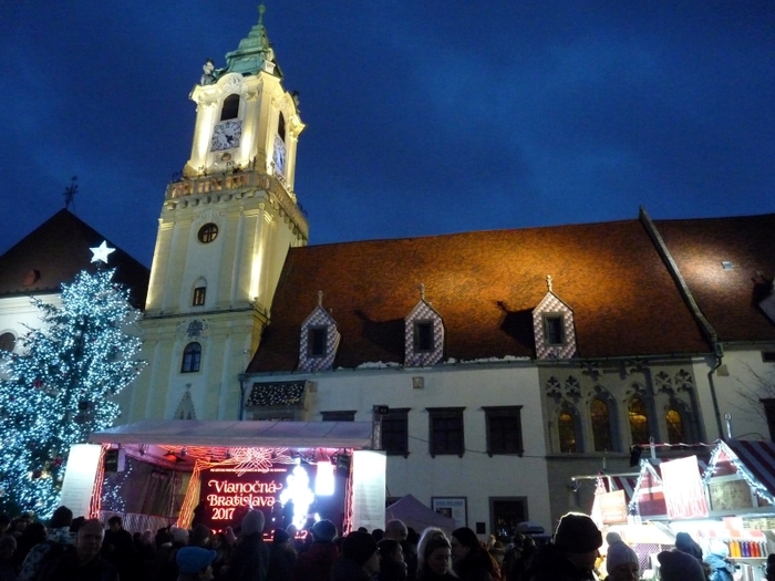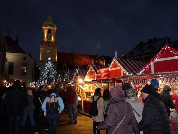 Naším hlavním cílem ale byla návštěva Bratislavy – prohlídka historického centra, především hradu, korunovačního kostela sv. Martina, Michalské věže, divadla, radnice. S přibývajícím odpolednem se ulice zaplňovaly turisty a návštěvníky adventních trhů. Na ně jsme po prohlídce památek mířili i my. Celí zmrzlí jsme nevěděli, čím se zahřát dřív – pikantní klobásou, lokšemi, pečenými bramborami, nebo se rovnou vrhnout na punče a svařáky? Každý podle své chuti. Ještě zbyl čas na nákup drobností domů.