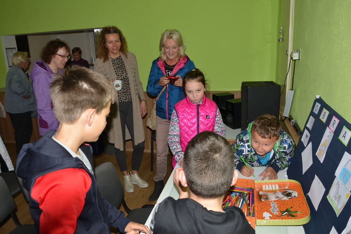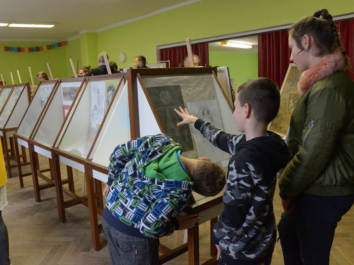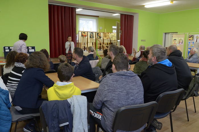Vernisáž zahájila písničkami z pohádek Adélka Klementová ze ZUŠ Boskovice. Radomíra Měkutová pak přítomné seznámila s obsahem výstavy, jejíž plánování, příprava a realizace zabrala celý rok. Výsledek návštěvníky příjemně překvapil - instalací výstavy, rozsahem a úrovní vystavovaných prací. Líbily se dětské kresby, staré školní výkresy, moderní koláže, abstraktní obrazy i klasické krajinky.Nejstarší výkresy z roku 1929-33 namaloval L. Dostál (č.p.13), který by se letos dožil 100 let.Děti se přímo na místě zabavily i kreslením podle písmen.